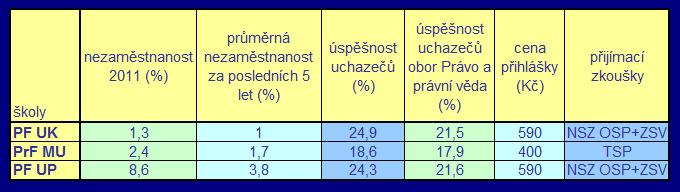 "Statistiky právnických fakult"