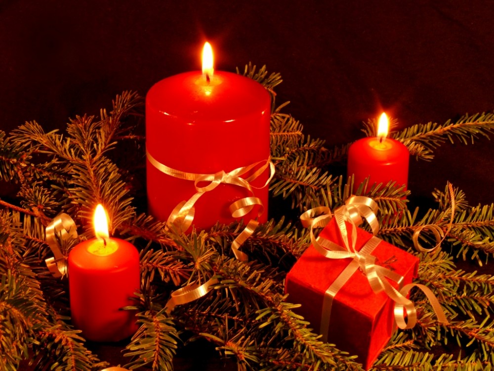 FOTO: Vánoční dekorace se svíčkami a dárkem