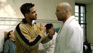 Brad Pitt a Bruce Willis v blázinci ve snímku 12 opic, Zdroj: distributor filmu