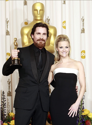 Christian Bale získal Oscara jako nejlepší herec ve vedlejší roli. Po jeho levici Reese Witherspoon, Zdroj: youtube.com