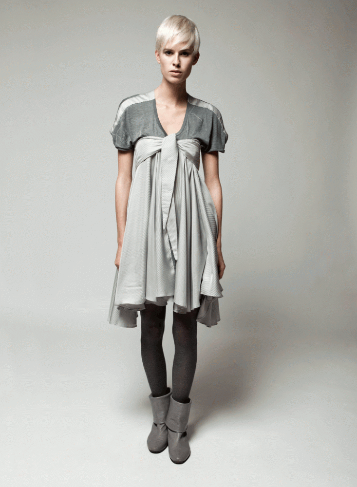V samotné kolekci samozřejmě nechyběl Chatty tolik oblíbený denim, ale tentokrát si návrhářky pohrály i s hedvábím, jehož lehkost, jemnost, splývavost a až prostá jednoduchá dokonalost naprosto perfektně ladila k modelům z denimu. Mimo tyto dva stěžejní materiály se v kolekci také objevuje pletená móda, která taneční modely lehce ozvláštňuje. Na to, že se Chatty doslova vyřádily na střihu, se v barvách drží tak trochu v nudné umírněnosti, převládají odstíny šedé, béžové či světle růžové. Pomineme-li fakt, že právě tyhle barvy jsou módní záležitostí podzim/zima 09/10, pochopíme záměr návrhářek. Právě tato paleta barev umožňuje dostatečně vyniknout střihovým variacím Dance kolekce.