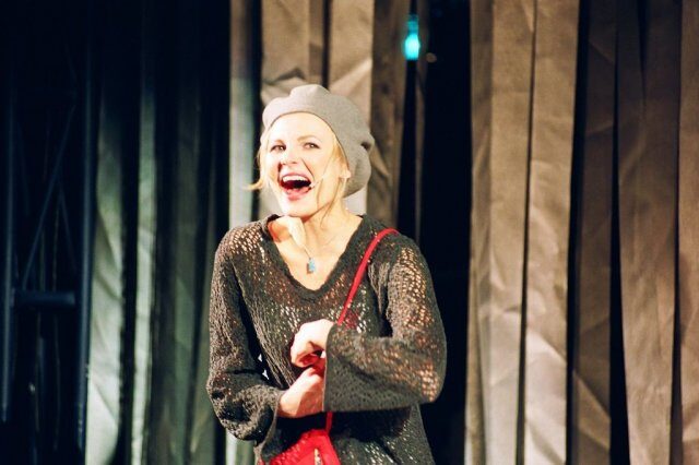 Michaela Badinková v jedné z mnoha rolí představení. Zdroj: www.divadlorb.cz