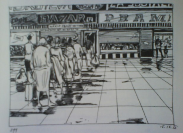 Skica č. 229: Nákup zboží od 11 hod., Zdroj: Deník 1952