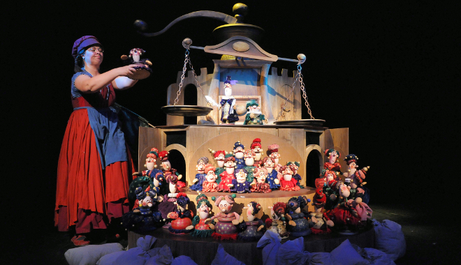Hrou Pohádka z kouzelného mlýnku provádí Milena Jelínková. Zdroj: Divadlo Alfa Plzeň