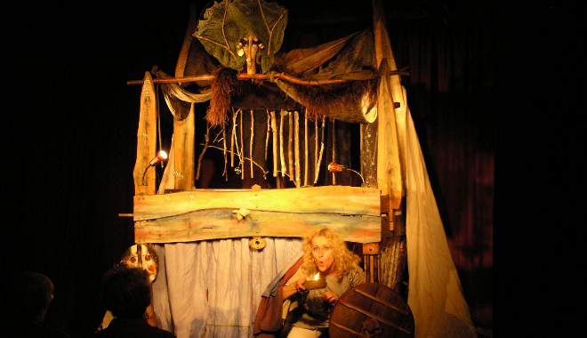 Hra Sněhurka a sedm trpaslíků se odehrává na komediantském voze. Zdroj: Teátr Víti Marčíka