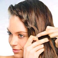Umyjte si vlasy, naneste tužidlo či přípravky, na které jste zvyklá, a vlasy vyfénujte. Vlasy mohou být rovné či vyfoukané do vln, obojí je možné. Oddělte část vlasů u levého ucha a začněte splétat. Postupujte stejně jako při pletení francouzského copu – do každé smyčky přidávejte další pramínky vlasů. Takto splétejte copánek zhruba k pravému uchu a zbytek dopleťte jako obyčejný copánek.