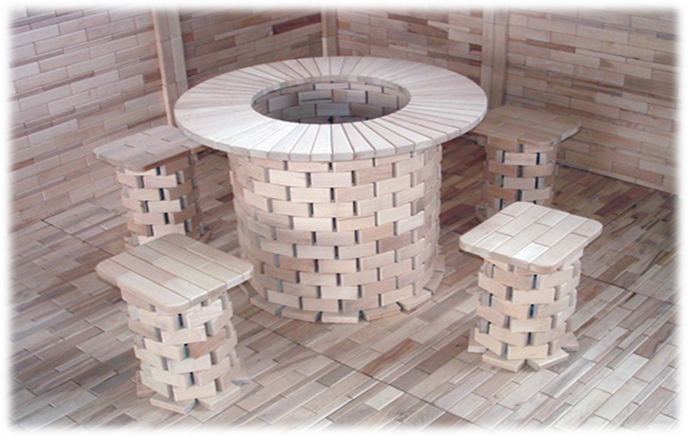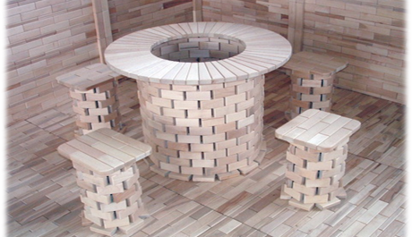 Nábytek je vyráběn z dřevěných cihel Mattonlegno. Díky patentovanému procesu dřevo získává speciální přirozený červenohnědý až červenočerný odstín, který není jednolitý.