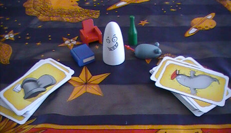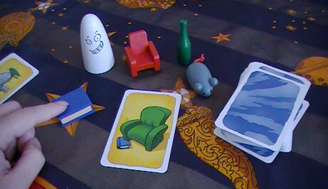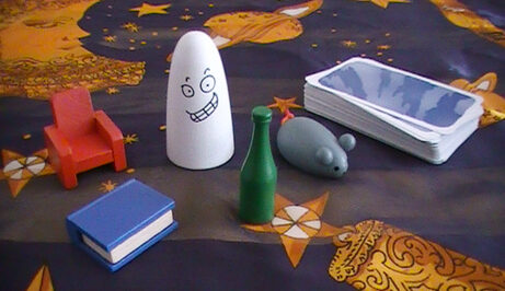Duch, myš, láhev, kniha a křeslo mají hned dvojí podobu. Jednu dřevěnou a druhou vyobrazenou v kartách. Ve hmatatelné formě najdou hráči předměty po jednom kusu. Každý má svou specifickou barvu. Křeslo červenou, láhev zelenou, kniha modrou, myš šedou a duch jak jinak než bílou. Na obrázcích se vyskytují různé dvojice těchto věcí, přičemž barvy, údajně vlivem duchova rozbitého kouzelného fotoaparátu, neodpovídají realitě. Proto je duch občas zelený, myška bílá, láhev červená a dalo by se ještě nějakou dobu pokračovat.