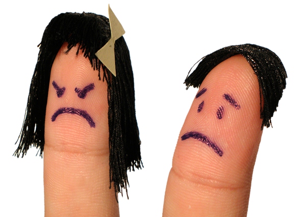 Dva lidské prsty s nakreslenými obličeji s negativními emocemi - hněvem a smutkem. Zdroj: www.sxc.hu, Foto: theodore99 Datum: 23.10.2008