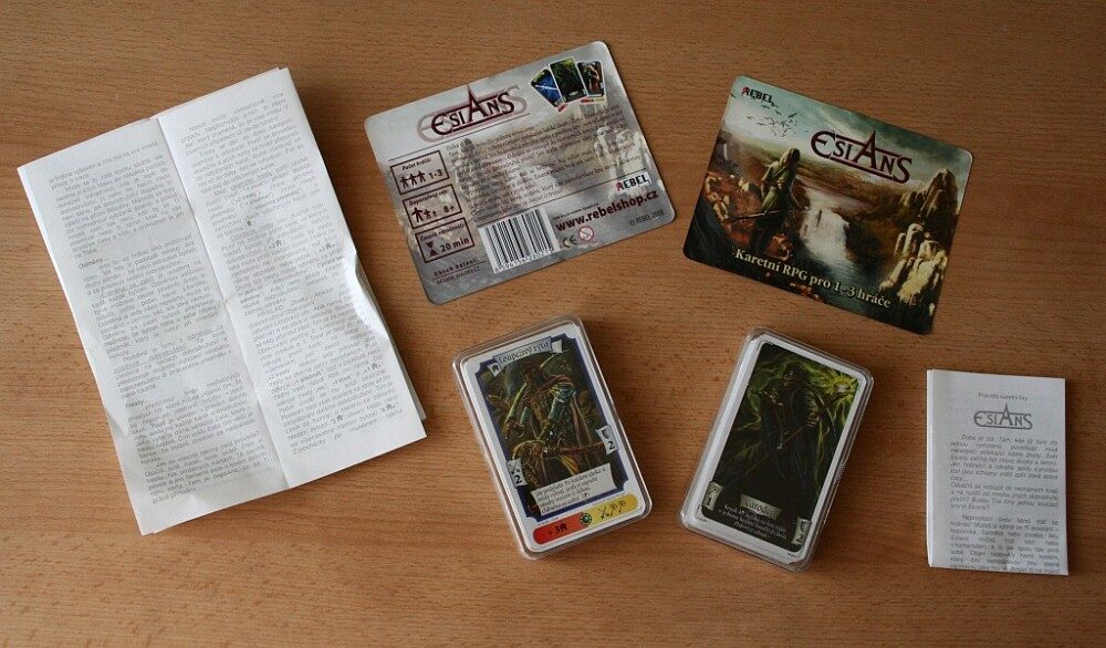 Hru Esians tvoří dvě jednoduché karetní krabičky. Veškerá zábava se ukrývá uvnitř spolu se dvěma listy, které jsou hustě popsány pravidly. Popravdě je to třeba, protože, ačkoliv jsou v konečném důsledku jednoduchá, jejich prvotní nastudování vám několik drahocenným minut života vezme. Tvůrci se na oficiálních stránkách ohánějí neotřelostí herního systému a to je nesporná pravda a právě toho je důsledkem nutnost delší popisu.