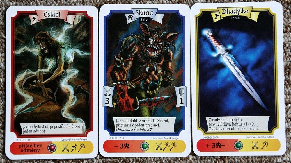 Je překvapivé, jak je hra s tak malým počtem karet (těch je 64, tři z toho slouží k vyznačení hrdinů) variabilní. I tak si ale myslím, že jich mohlo být o trochu víc, na druhou stranu, alespoň je prostor pro slibované rozšíření. Rozsah je dán dvěma mariášovými krabičkami s objemem 32 karet, takže další krok by znamenal karet 96, což by se mohlo podepsat na ceně. Variabilita je i se stávající sadou zaručena tím, že každá karta má několik použití. Díky tomu se pokaždé setkáte ve hře s jinými situacemi a je nízká šance, že se budou často opakovat stejné souboje ve stejných lokalitách.