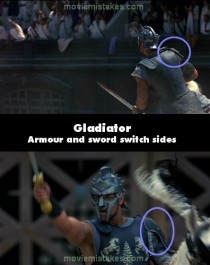 3. Během jedné z bitek v Colosseu jede Maximus na koni, drží meč v levé ruce a přes pravé rameno má chránič. Poté je rychlý střih, kamera mnohem blíž a záběr tentokrát zepředu. A ejhle, meč drží v ruce pravé a chránič má na levém rameni. Ten Maximus je vážně rychlík.