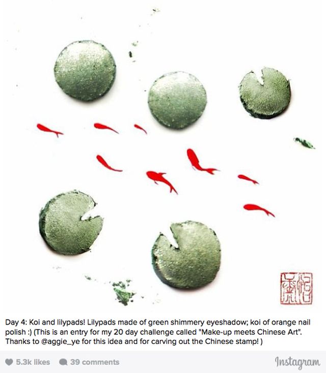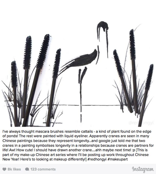 Malajsijská umělkyně a architektka Hong Yi si začala v rámci svých projektů pohrávat s uplatněním make-upu na plátně. K vytváření obrazů používá oční stíny, pudr, řasenky, rtěnky a další šminky, aby imitovala tahy štětcem. Ve světě je tudíž známá jako umělkyně, která miluje malbu bez použití klasického malířského štětce.