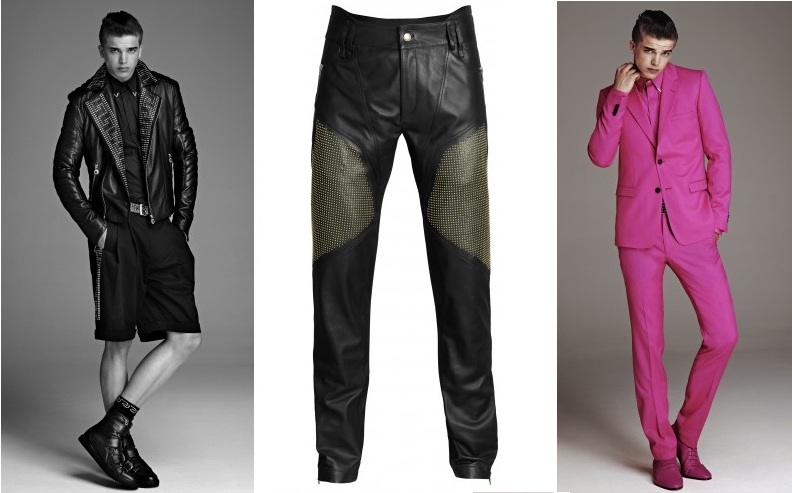Pánská móda není o nic méně extravagantní než dámská. Ukazuje nám možnosti různých kombinací, pro ty nejodvážnější výrazně růžové sako, kalhoty a boty. Samozřejmě i tady naleznete zlaté cvočky, které lemují kožené bundy, řecké vzory a palmové či optické motivy.