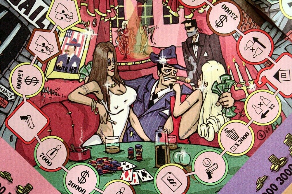 Veškerý boj o vítězství ve volbách se bude odehrávat na prostoru tvořeném čtvercovou hrací plochou. Ta je poseta mnoha roztodivnými ilustracemi, které navozují gangsterskou atmosféru, ať už jde o muže zachycené při vykrádání sejfu nebo třeba pasáka relaxujícího v kasinu. Na adresu grafického provedení jsem zaznamenal většinou pozitivní reakce, ale setkal jsem se také s nesouhlasnými názory (ačkoliv byly v menšině). Zde se poprvé vynořuje jeden z hlavních háčků této hry – není pro každého. Tento problém se neváže pouze na vizuální ztvárnění zločineckého prostředí, ale i na ladění herních principů.