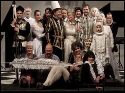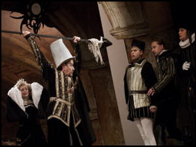Monstrózní kulisy, shakespearovské kostýmy, výrazné líčení, náhlá přerušení, hudební doprovody, ale i vtipné dialogy, když si například herci sami ze sebe dělají legraci, inscenaci dodávají šmrnc a divadlu na divadle nic nechybí.