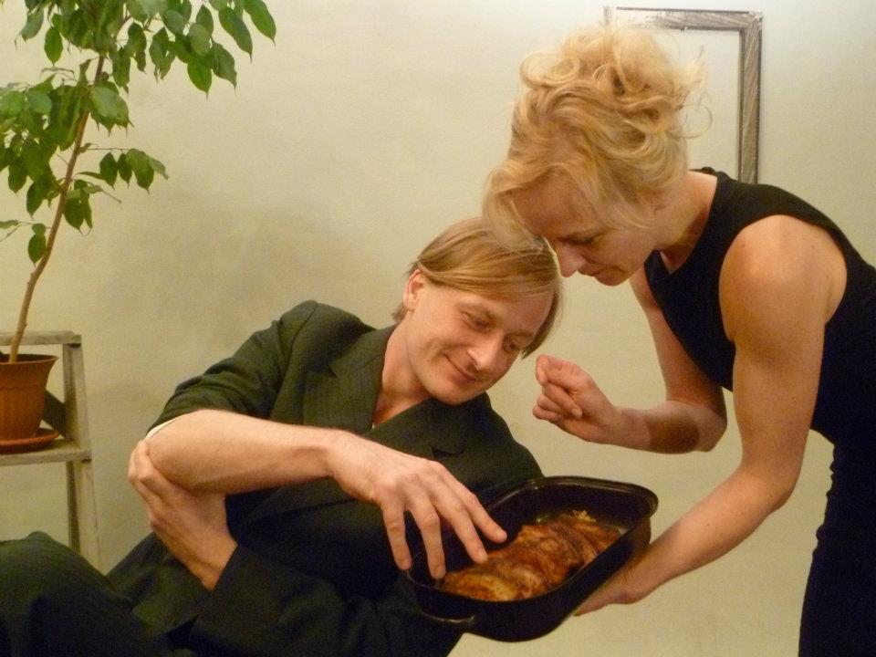 V hlavních rolích Martin Siničák, Eva Novotná a hromada jídla Zdroj: kabaretspacek.blogspot.com