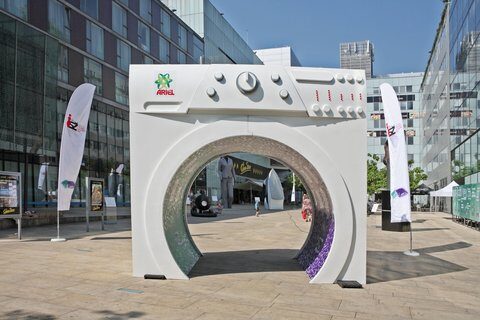 Ne, není to sexistické, snad jen suché konstatování. Výstava Inovace ve světě žen, která v srpnu probíhala na Piazzetě Anděl, přinesla obří nafukovací modely žehličky, pračky, řasenky nebo třeba kalhotového kostýmu. Objekty vznikly ve filmových studiích v Budapešti a do Prahy přišly pod záštitou čistících prostředků Ariel.