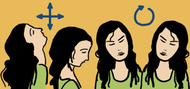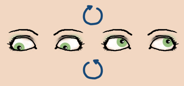 Kroužení očima: Zakružte očima na jednu stranu, poté na druhou. Opakujte 5x na každou stranu.