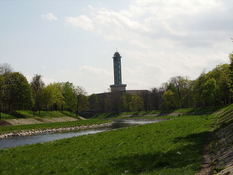Řeka Ostravice a městská radnice, Zdroj:commons.wikimedia.org
