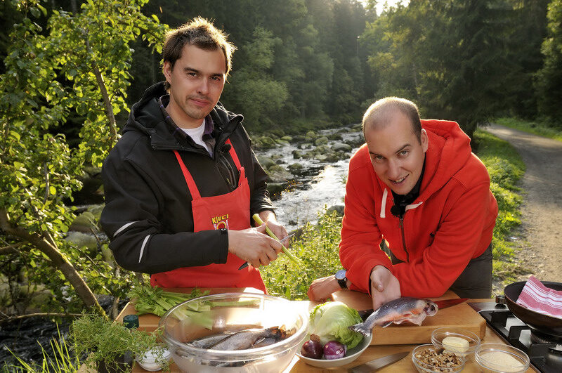 Zatímco, lehce řečeno, v minulém století se předháněly televizní kanály v počtu soutěžních pořadů, dnes už jsme se od chytrých hlav přesunuli k jídlu. Kuchařský pořad můžeme naladit téměř každý den nějaký. Jeden z prvních pořadů, trvajících dodnes, již v roce 2005 připravila Česká televize, a to se sympatickými mladíky Filipem Sajlerem a Ondřejem s příznačným jménem Slaninou.