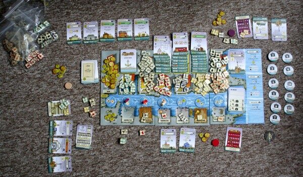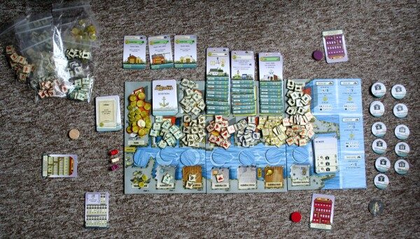 Příprava hry bývá delší, liší se dle počtu hráčů, ale je nezbytnou součástí hry. Jak již bývá u Uwe Rosenberga zvykem, všechny herní komponenty mají ve hře své přesné místo. Takže v přístavu najdete různé budovy, v nichž se skladují odlišné suroviny, například zásobárny ryb, dřeva a obilí. V rohu herního plánu najdete banku s hromadou zlatých franků, která vám v případě potřeby ráda poskytne půjčku.