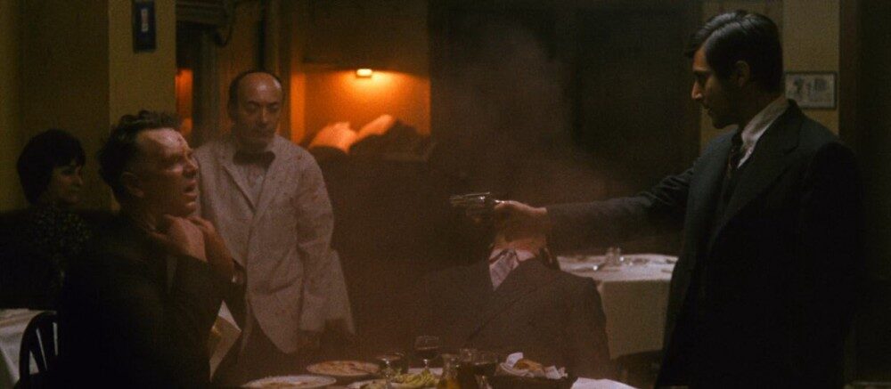 Al Pacino (vpravo) zabíjí ve filmu Kmotr své oponenty Zdroj: obrázek z filmu Kmotr