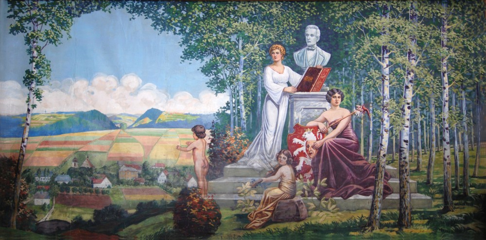 Opona Ochotnicko-čtenářské besedy ze Sopotnice glorifikuje patrona ochotníků J. K. Tyla
