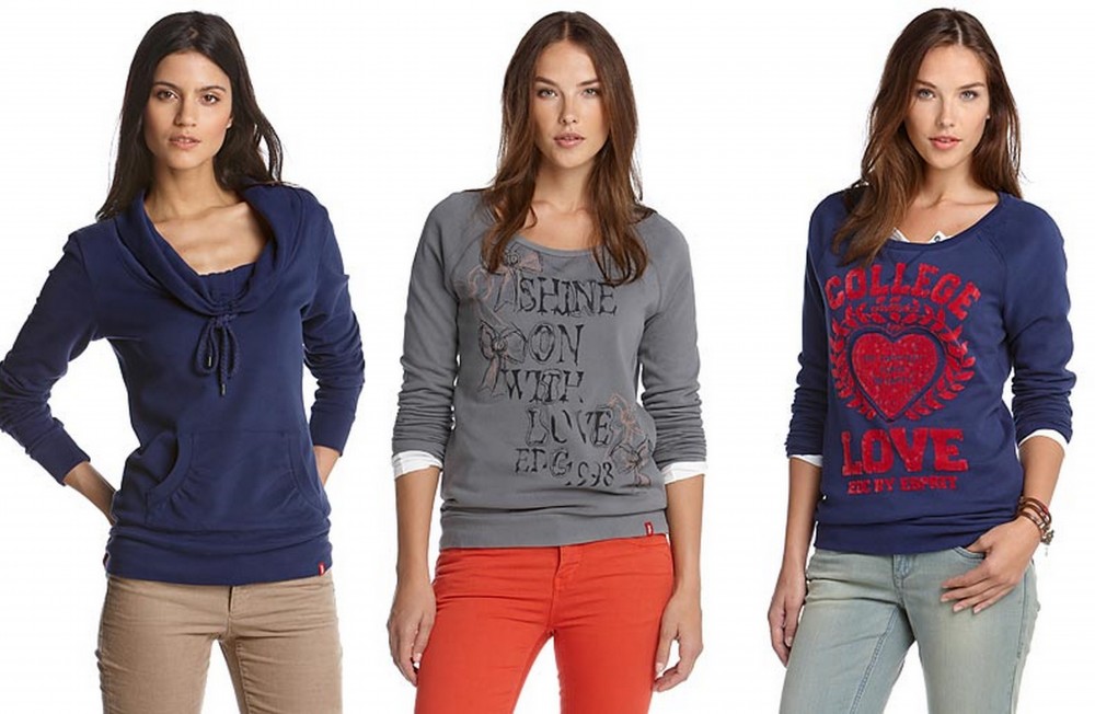 Mikiny bez kapuce v různém provedení, Zdroj: esprit.co.uk