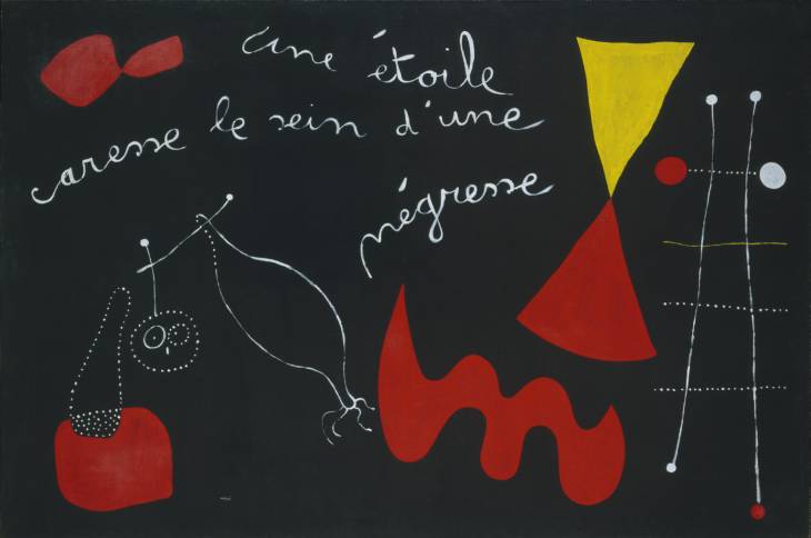 OBR: A star caresses the breast of negress, 1938Londýnská galerie Tate Modern tento týden otevírá exkluzivní retrospektivní výstavu jednoho z nejvýznamnějších malířů 20. století, Joana Miróa. Poprvé v historii na ní navíc bude společně k vidění pět Miróových obřích triptychů. Expozice bude v Tate modern až do 11. září.
