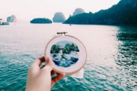 Představte si následující situaci. Jste se svým milovaným protějškem na dovolené a chcete si zachytit trvalou vzpomínku na tu nádhernou přírodu, která vás obklopuje ze všech stran. Stačí tedy vytáhnout fotoaparát nebo mobilní telefon, rychle cvaknout a řada snímků je hotova. Jednoduchost ale není pro každého, a tak se designerka Teresa Lin dala raději do vyšívání onoho momentu.
