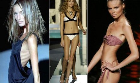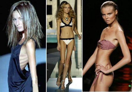 Měřítko je nastaveno tak, že čím hubenější, tím lepší. Modelky nejsou štíhlé a ženské. Jsou vychrtlé, postrádají sexy tvary a některé dokonce vypadají, že mají hlad. Zdánlivě nezdravý vzhled je asi opravdu populární. Většina manekýn má kruhy pod očima a záměrně ztrhaný výraz. Žádná šťáva, jiskra, život, atraktivita.