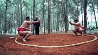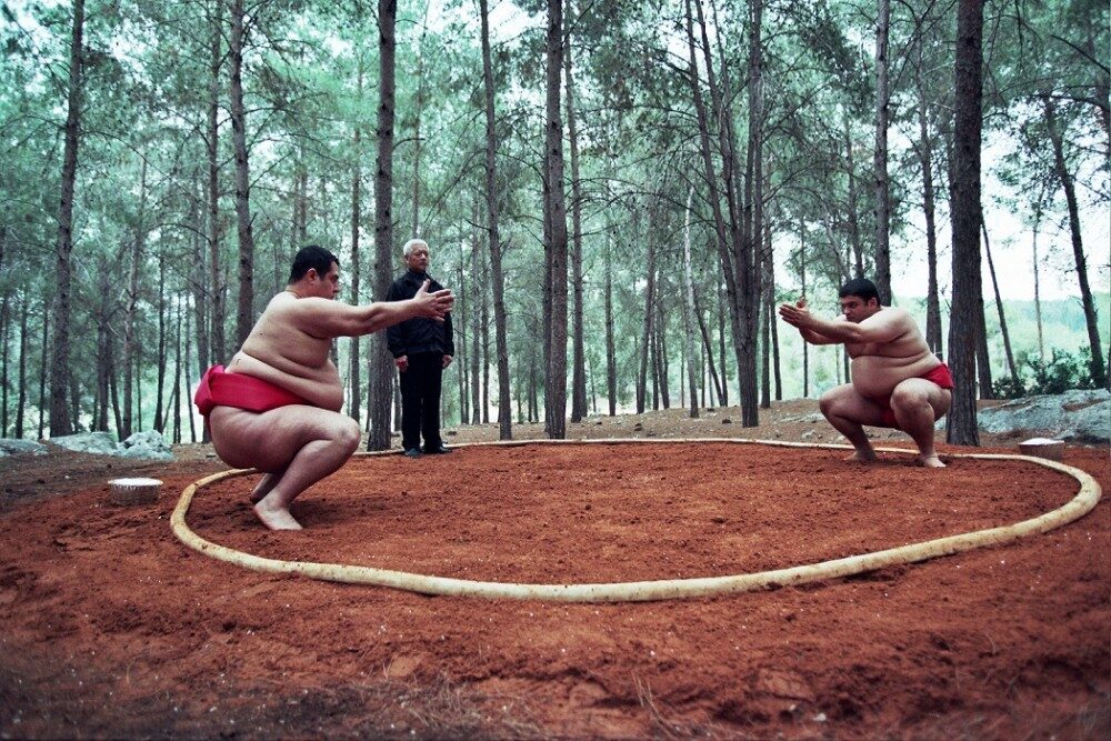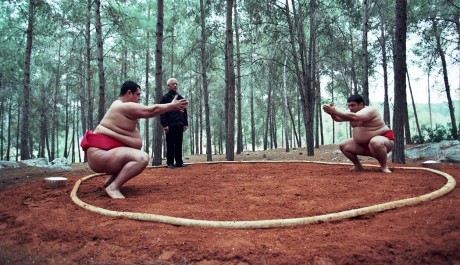 Tento sport poprvé uviděl na japonské televizi v sushi baru a od svých spolupracovníků také získal základní náhled do pravidel zápasení. Právě v sumó je tloušťka, na rozdíl od jiných odvětví lidské činnosti, spíše předností než problémem: soutěžící zde dávají na odiv své sádelnaté tělo, stejně jako sílu a bojovnost, a za vše jsou odměňováni potleskem a úctou publika. Není to ideální forma revolty vůči společnosti posedlé hubeností? Jak se ale brzy ukáže, tréninkový dril a samotné zápasení nemohou vyřešit vše, jestliže jsou partnerská a citová pouta oslabována neustálým lhaním, tajnostmi a nedůvěrou.