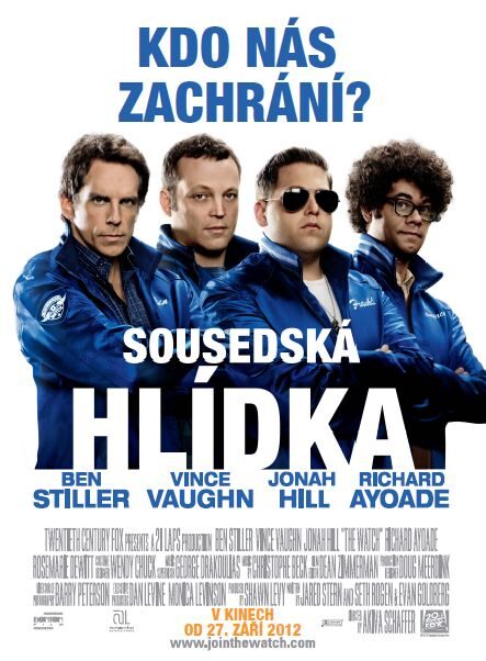 Sousedská hlídka (The Neighborhood Watch), Komedie/Sci-Fi, USA, 2012, 102 minut, Režie: Akiva Schaffer, Hrají: Richard Ayoade, Vince Vaughn, Ben Stiller, Jonah Hill, Billy Crudup