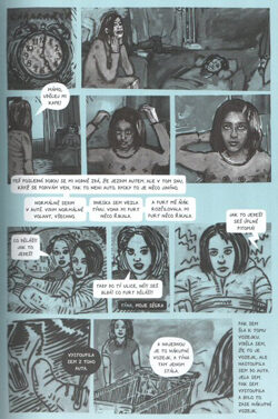 Nicméně, co mě opravdu zaráží, kampak se zatoulala paginace? Také bych ocenila lepší rozčlenění a strukturu příběhu. Neuškodila by mu lepší členitost případně nějaké názvy vložených mini příběhů. Vyskytuje se tu pouze jeden název vloženého komiksíku. S tím souvisí i lettering. Písmo je sice čitelné, ale malé a téměř vždy stejné velikosti. Diváka to po nějaké době ubíjí a nudí. Oceňuji, že se už tolik neobjevuje ona nelibá manýristická bíla linka, která u Ferka byla na každém centimetru.