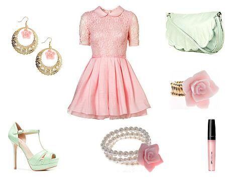 Růžové šaty s krajkovým detailem budou skvěle vypadat v kombinaci s mintovou barvou, která je momentálně hitem sezóny. Perlové doplňky pak skvěle podtrhnou dívčí look.