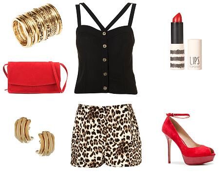 Tričko, kraťasy, náušnice a rtěnka (Topshop), kabelka a boty (Zara), náramky (H&M.com)
