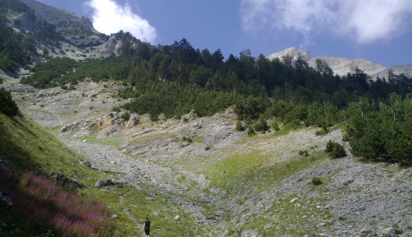 V pátek ráno už sluníčko zase hřálo. Čekal nás konečný sestup až do Litochora, tedy více než 2500 metrů převýšení. Kolena už mě bolela ze všech stran, nestíhala jsem tapeovat. Záviděla jsem mulám, které docela bez protestu poklusávaly s těžkým nákladem po úzkých kamenitých cestičkách do kopce. Terén se už ale pomalu měnil. Skály začaly ustupovat mechu a mech trávě. Pod námi už dýchaly zelené stromy. Pořád to ale byl strmý sráz. Ondra neustále opakoval, že už to je jen pár kilometrů, že někde pod námi už musí být ta silnice. S Luckou jsme tolik optimismu ale nenacházely. Nechápali jsme ani skupinu Rumunů s dětmi, co dělají v lese v žabkách. Oni tomu asi taky moc nerozuměli.