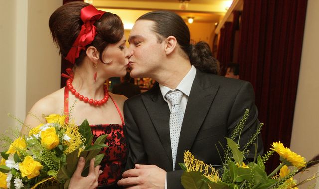 Vítězný polibek Petry Janečkové a Ladislava Špinera.