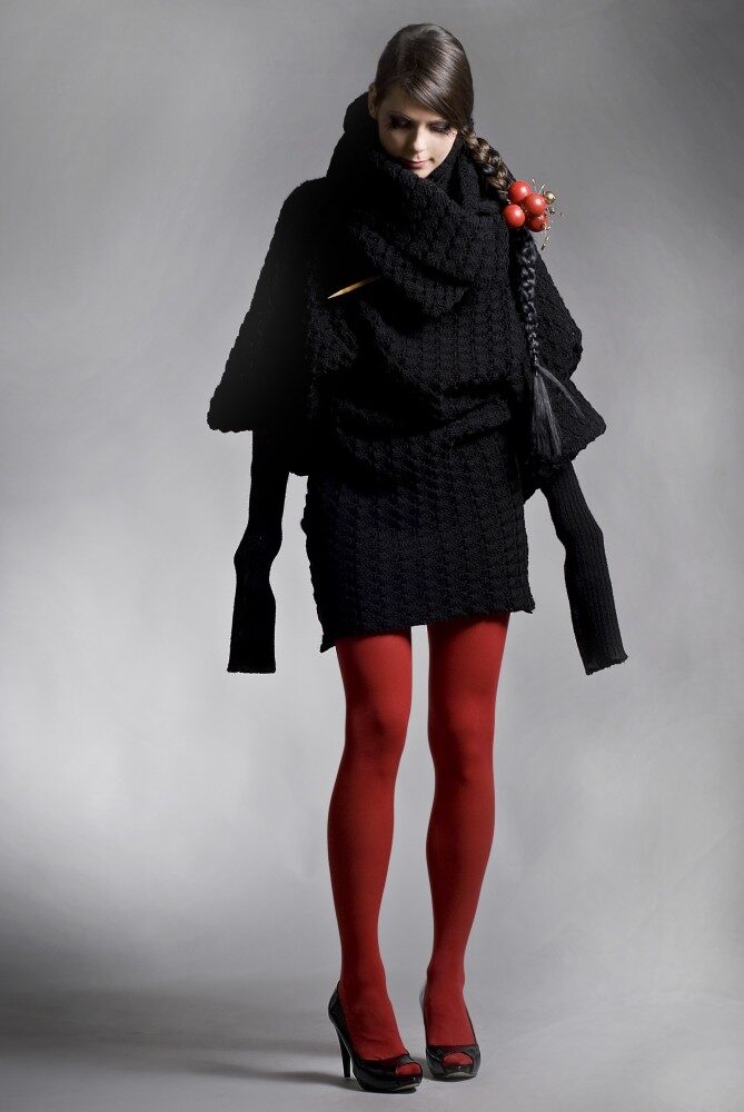 Na oceněné kolekci SVETRYNK je vidět obrovská trpělivost, protože vytvořit ručně pletenou módu, kde má každý svetr odlišnou strukturu pleteniny, vyžaduje čas, který všem chybí, trpělivost, která mnohým schází, a neúnavnost při hledání a dosažení cíle. Celá kolekce je vyvedena v nenápadné, ale elegantní a tolik oblíbené černé, šedé a fialové, které návrhářka postavila do kontrastu s výrazně barevnými punčochami a roláky.