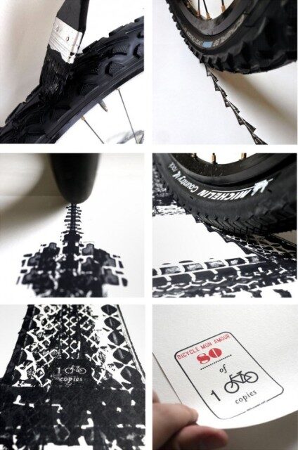 Umělec usazený v Singapuru vytváří zajímavá díla pomocí otisku vzorku pláště klasického kola. Jelikož cyklistika patří mezi jeho velké záliby, rozhodl se tímto způsobem proslavit. Thomas Yang rozetře hustou černou barvu na různé druhy plášťů a až s neuvěřitelnou přesností přenáší jejich vzorek na papír.