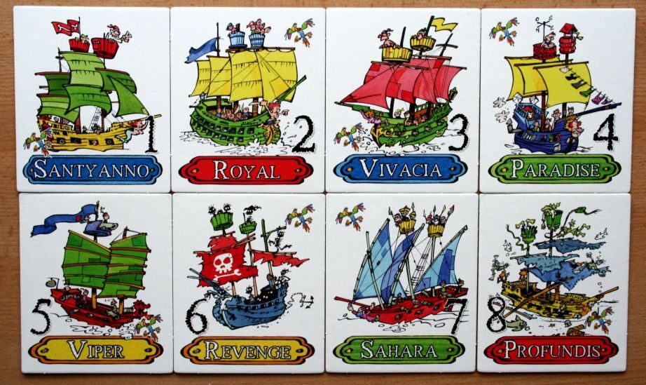 Tvůrce Alain Orban do hry zařadil kartičky osmi naprosto odlišných lodí. Najdete zde krásnou Saharu či Royal, ale také třeba pirátskou Revenge. Pomocí osmi jmenovek s obrázky pirátů se budete moci vtělit do té vám sympatické postavičky.
