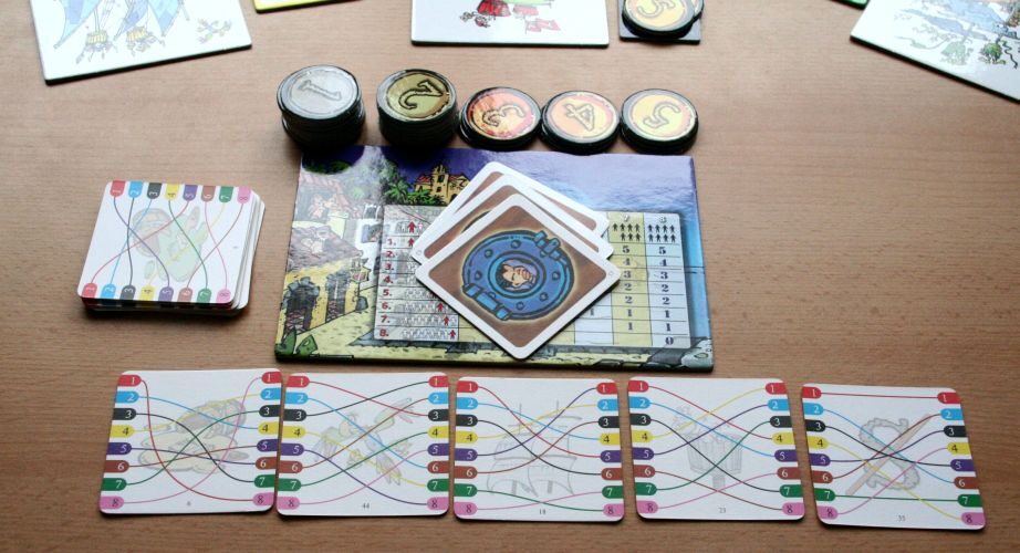 Největší komponentou v krabici je plánek přístavu. Jeho hlavním účelem je naznačit rozdělení kořisti na konci jednotlivých kol. Ve výčtu zbývají pochopitelně dukáty, ale především 55 palubních karet, které vás budou na cestě při hledání lodi provázet.