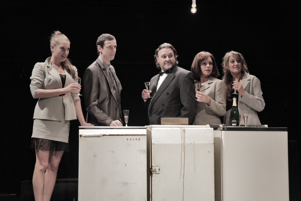 Že jde kladenské divadlo s dobou, je vidět na první pohled. Recyklují nejen staré hry do moderní podoby, ale hlavně i staré lednice, které dokreslují chladnost tragického příběhu. Slouží nejen jako chladicí zařízení pro alkohol a zbraně, ale také vytváří barevné světelné efekty. Velmi dobrý nápad jak využít vše, co je po ruce.