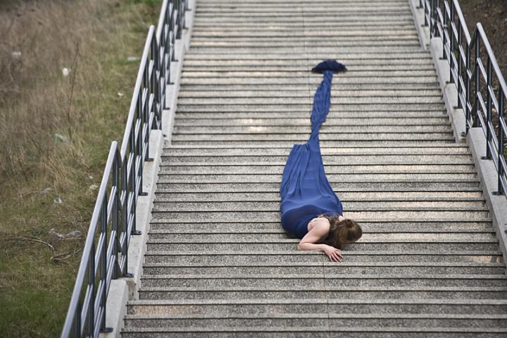 Lágrima otevírala festival Česká taneční platforma. Neodehrála se na jevišti divadla, ale na dlouhých schodech vedoucích směrem od divadla Ponec kolem Armádního muzea k Národnímu památníku na Vítkově.