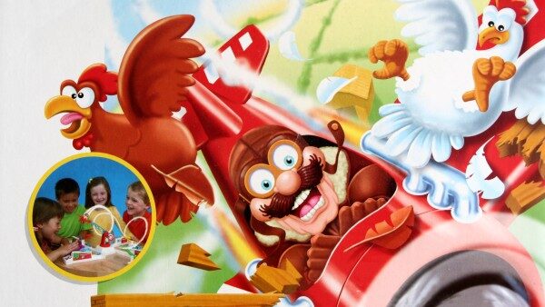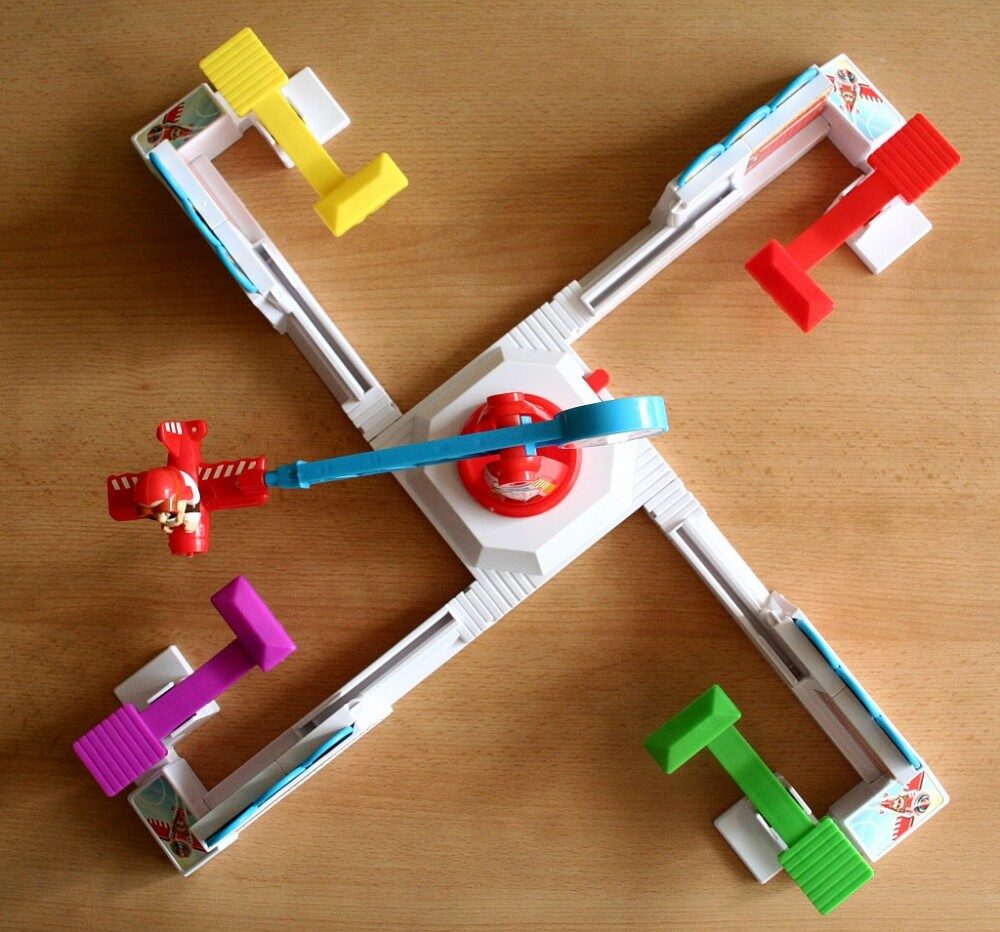 Dojmu jednoznačně vévodí postavička Louieho, sedícího v letadle na dlouhé rampě, kterou je třeba zasadit do středového dílu. Od té doby je hlavní záporák hry na místě, odkud vám bude při každé hře s radostí a škodolibě škodit. Nyní už jen nasadíte do postaveného díla čtyři ramena, které reprezentují čtyři kurníky, a zábava může prakticky začít.