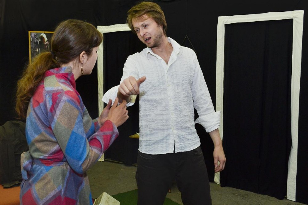 Pokoj s obrazem pověšeným na stěně a jediným gaučem vprostřed místnosti nechával hercům dostatek prostoru, který nezůstal nevyužitý. Obzvláště šikovně jej vyplnili ve chvíli příchodu Spartaka na scénu, což způsobilo zlom a děj se začal rychle odvíjet. Nedorozumění a přehlídka všech možných svalů, nečekaný polostriptýz, věty vedoucí na scestí…