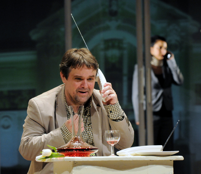 Alexandr Postler v roli "blbce" pohostil i daňového kontrolora. Zdroj: Ladislav Formánek, vcd.czVýchodočeské divadlo uvedlo hru Blbec k večeři. Komedii plnou břitkého humoru, která nutí i k zamyšlení. Režisérkou se stala Hana Mikolášková. Zdroj: vcd.cz, Foto: Ladislav Formánek Datum: 13.5.2012
