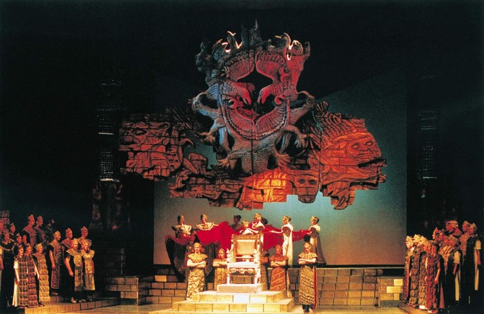 Vypálený chrám, národ uvržený do zajetí a osud krutovládce. Síla Verdiho opery Nabucco spočívá ve sborových písních a davových scénách. Představitel hlavní postavy Richard Haan oblékl roucho tyrana Nabuchodonozora již po pětisté.