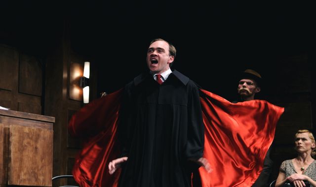 Velký podíl na koloritu postav mají samotní herci. Pozornost na sebe během celého dějství strhává především Jiří Hána v roli státního zástupce. I bez rekvizit, kostýmů a gest by divák  rozpoznal, že jeho přehnaná touha po spravedlnosti a trestu nápadně připomíná v lepším případě ďábla, v tom horším Führera.